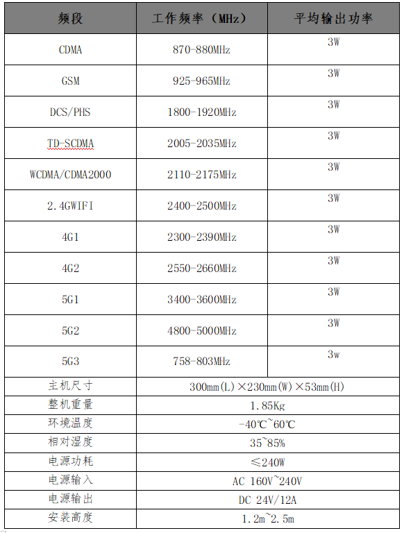 2、重慶市萬州區(qū)考場5G屏蔽器產(chǎn)品參數(shù)