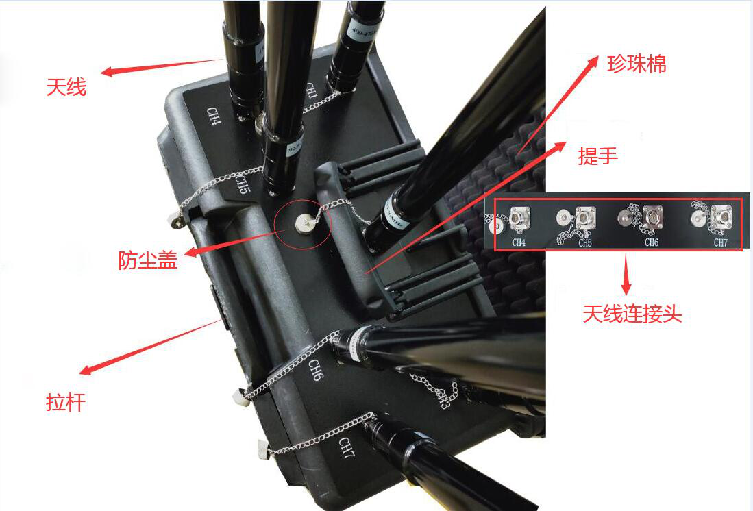 - 由于屏蔽器功率過大,車載電源消耗會特別快,請按實際的使用時間準備車載備用電源