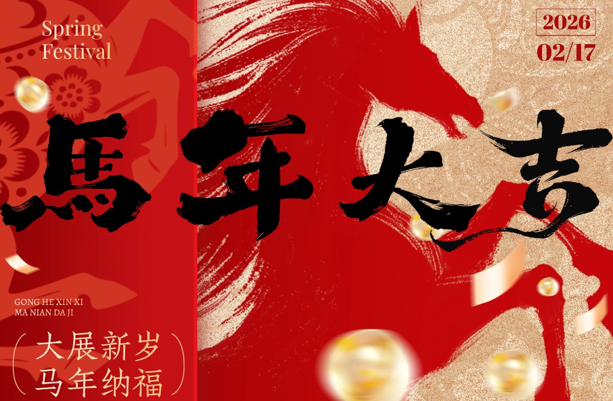 當 2026 年的第一縷春風拂過東海之濱,馬年的蹄音已然清晰可聞。在這辭舊迎新、萬象更新的美好時刻,寧波大展電子科技有限公司向長期以來支持、信任我們的客戶、合作伙伴及各界朋友,致以最誠摯的新春問候和最美好的馬年祝福!