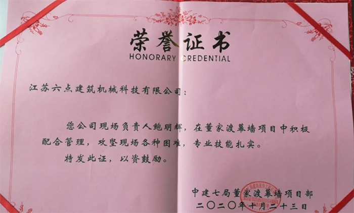 進入公司兩年多,平時工作認真負責,在施工現場愛護公司財產,以公司利益為大的前提,同時維護客戶的利益,得到了中建七局裝飾工程有限公司的一致好評,獎勵現金1000元。